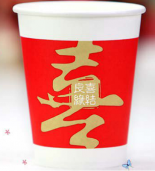 The wedding cup is a high-grade disposable paper container used for drinking at wedding banquets. The exterior is red, and it also bears the word “Happy”.